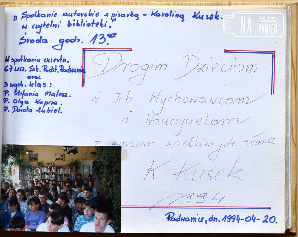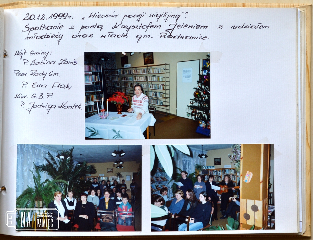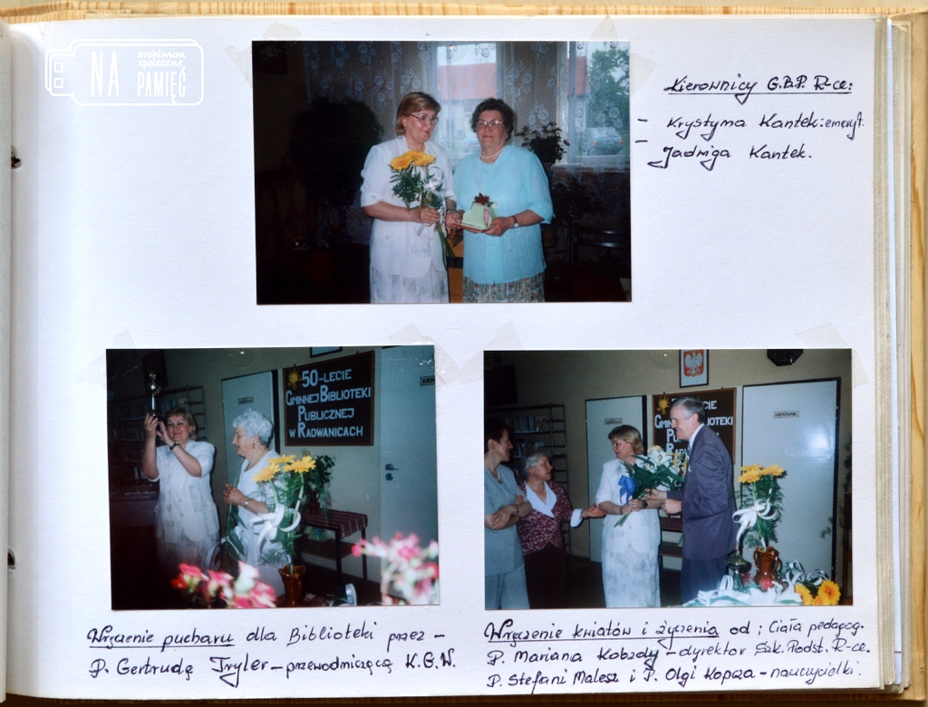 Kolekcje I Komunie Święte « ‹ z 2 › » « ‹ z 2 › » Dożynki w Radwanicach Plon niesiemy plon... "Roszarnia" w Radwanicach Lubuskie Zakłady Lniarskie, Przedsiębiorstwo Produkcji Celulozowo Włókienniczej Cellinen... Przedszkole w Radwanicach Zdjęcia zbiorowe, z życia przedszkola... Słonie w Radwanicach Szkoła Podstawowa w Radwanicach Zdjęcia zbiorowe, klasy, szkolny zespół taneczny, chór, wycieczki, z życia szkoły... Zespół muzyczny "Hades" Klubokawiarnia Niegdysiejsze miejsce spotkań... Park w Radwanicach Wydarzenia kościelne Procesje, Boże Ciało, msze święte... Życie codzienne i czas wolny w Radwanicach Historia Radwanic i okolic opowiedziana przez ich mieszkańców... Wiece i pochody pierwszomajowe Obchody Święta Pracy... Ochotnicza Straż Pożarna w Radwanicach Zawody strażackie, zdjęcia zbiorowe, pokazy, akcje, wydarzenia i uroczystości... Zespół rodziny Mikoś Architektura i infrastruktura Radwanic Instytucje, budynki mieszkalne, drogi... Sport w Radwanicach